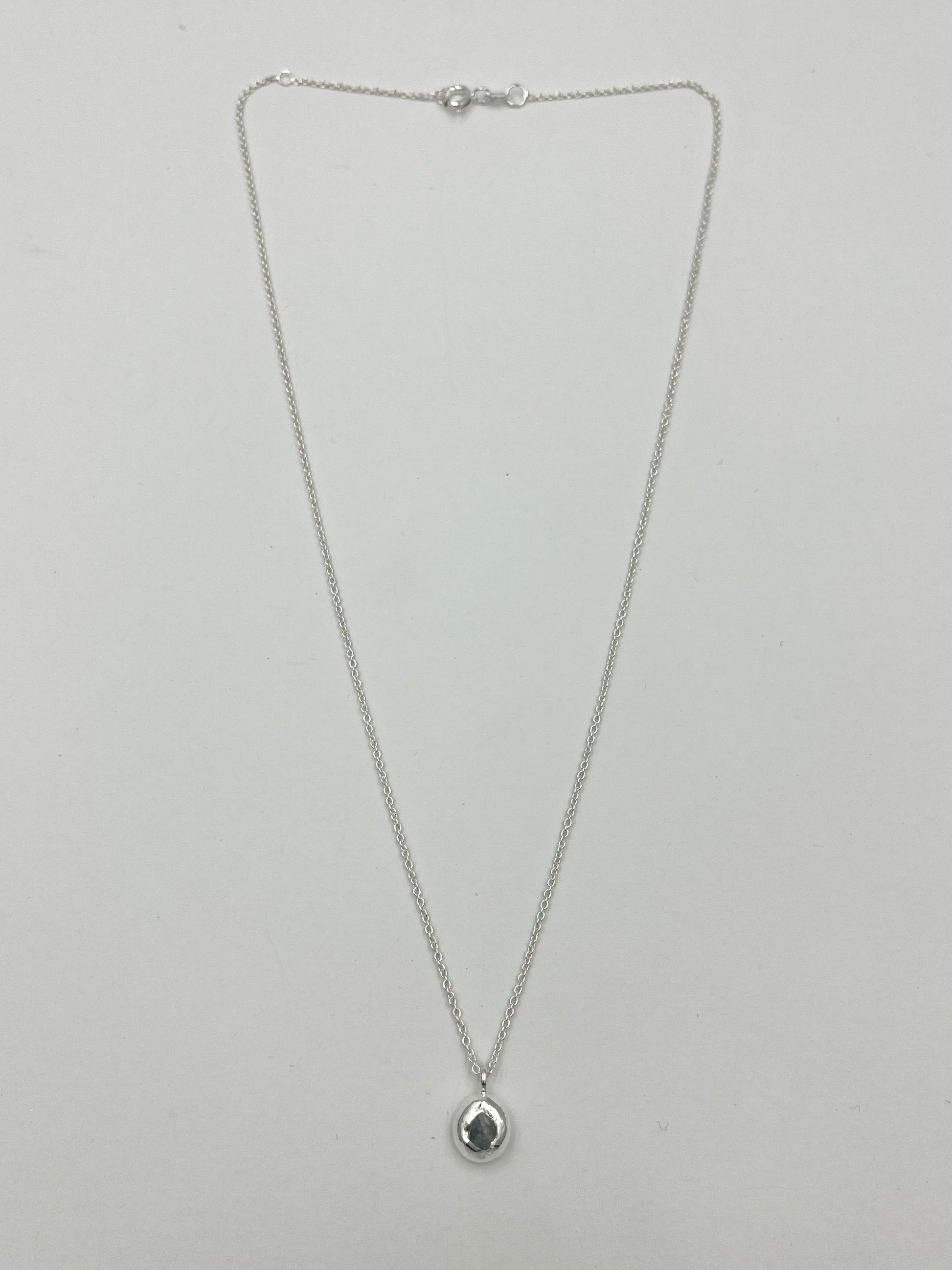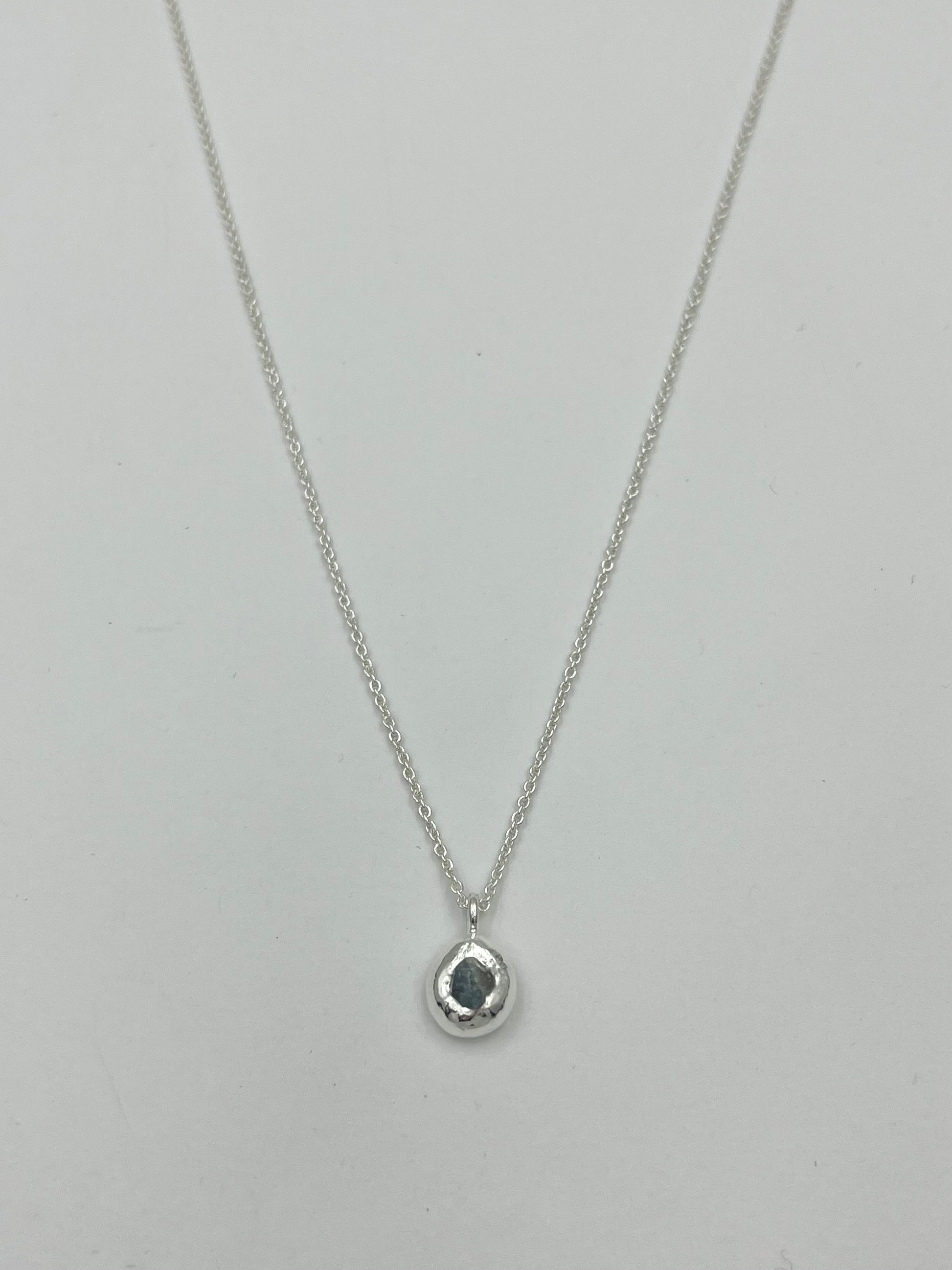 SAFIR necklace is a unique piece where a raw sapphire has been encased in silver. This necklace features a light blue sapphire. It is the perfect everyday necklace but can also be worn for more formal occasions.