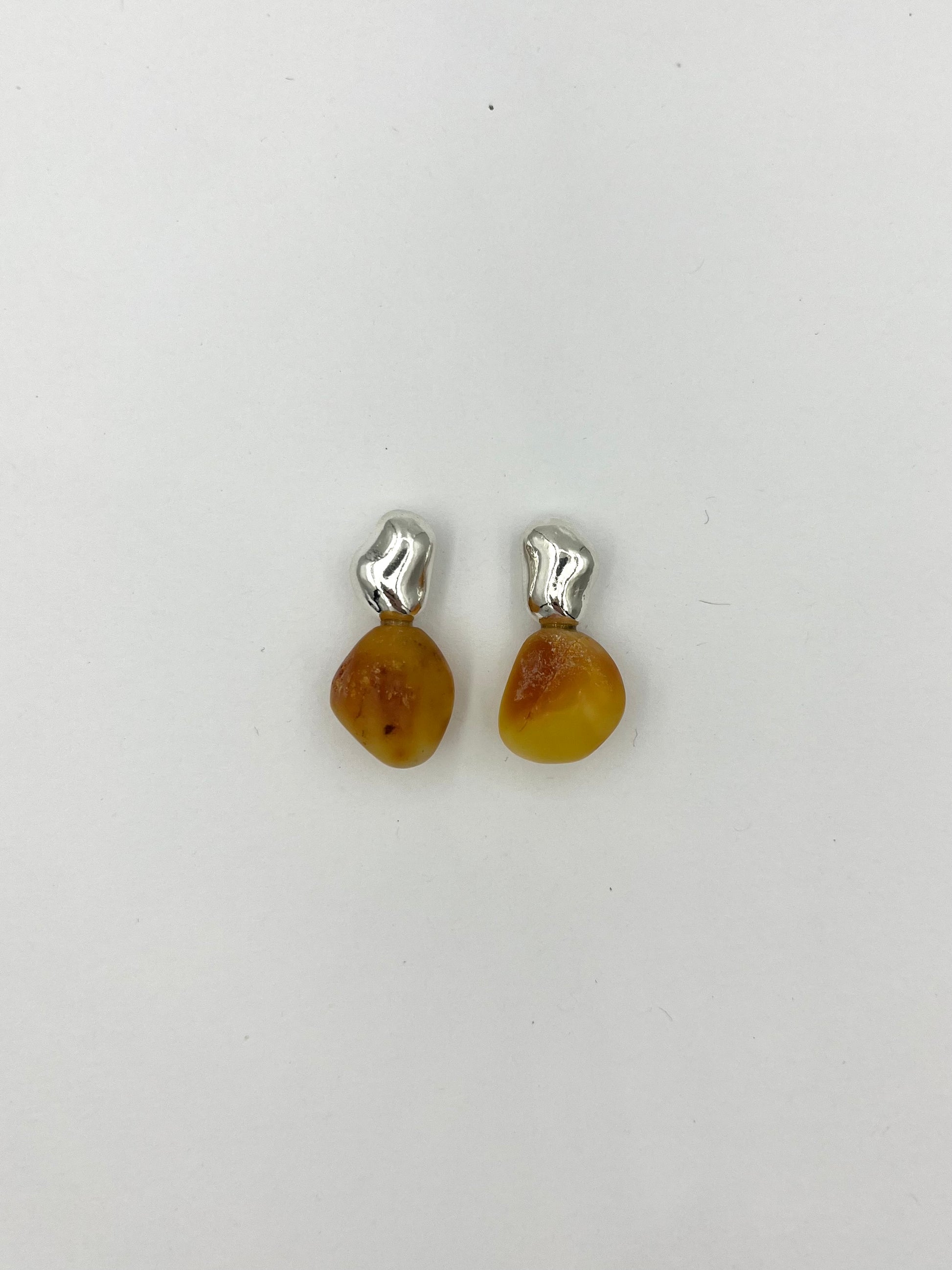 SOL earrings are unique and beautiful amber earrings. They are made from a larger piece of amber found along the coast of Thy, which has been carefully polished. The design features an organic shape in solid silver. They are perfect for both everyday wear and special occasions.